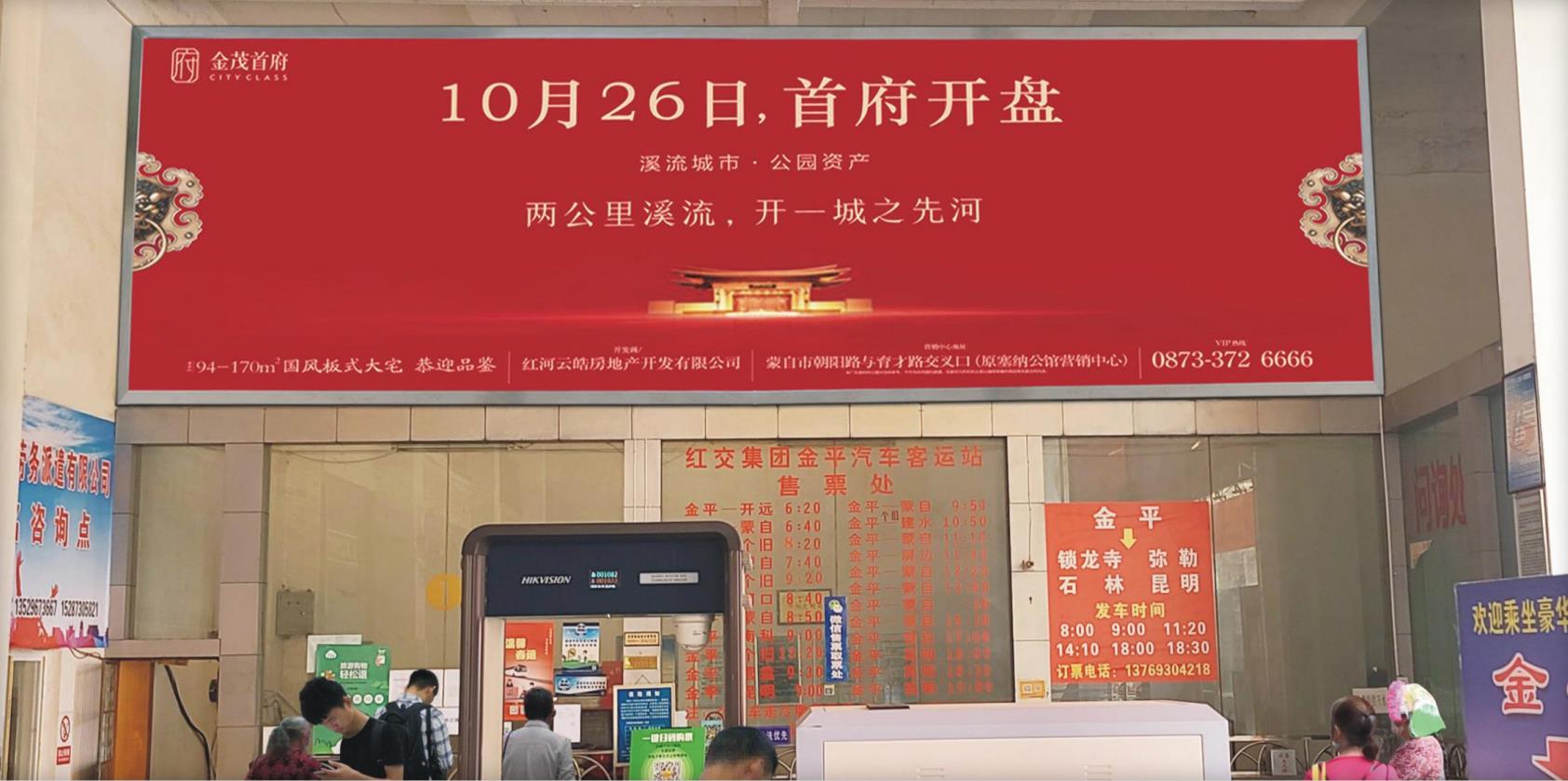 红河州金平县汽车客运站售票大厅广告牌